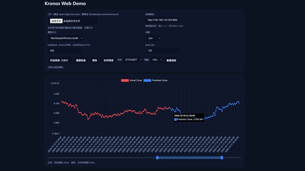 web界面,通过github上开源项目,利用已训练的k线模型,自己在本地Ubuntu上搭建一个可预测未来24h k线走势的界面,此项目地址:https://github.com/moncici007/Kronos/tree/master,