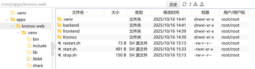mkdir -p ~/apps/kronos-web/{backend,frontend}