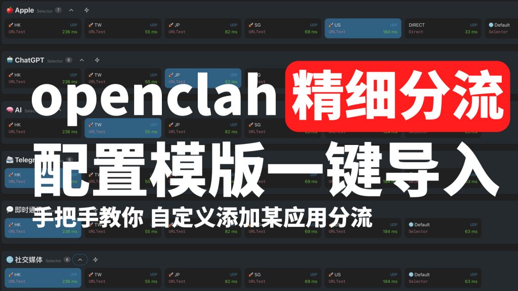 进入 OpenClash 内核的流量,不再做“能不能翻墙”的判断,而是只判断它属于哪一类业务应用。所有规则全部围绕「应用属性」设计,而不是围绕域名、IP 或端口堆砌,即使前端、API、CDN 频繁变动,分流逻辑依然稳定。